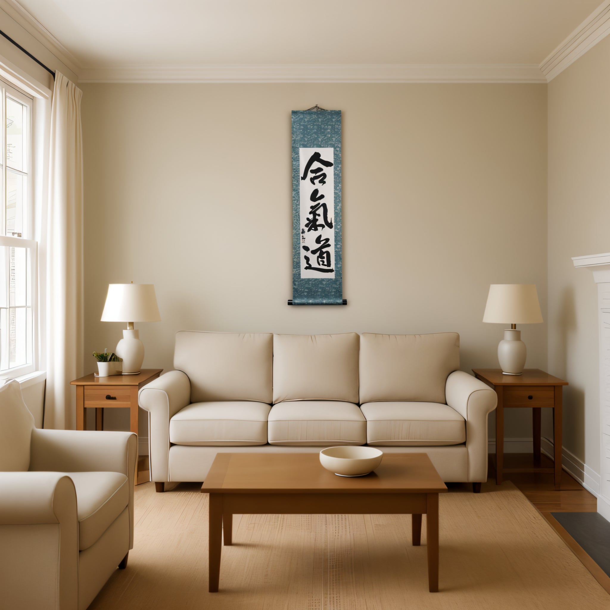 Each brushstroke reflects the essence of Aikido: calm focus, inner strength, and the discipline of movement. By displaying this scroll, you align your space with the energy of the practice, enhancing your training environment and motivating you to continue on your path of growth.